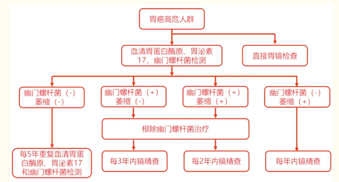 2014年4月,我國提出《中囯早期胃癌篩查及內(nèi)鏡診治共識意見》,共識推薦聯(lián)合血清學檢查胃蛋白酶原和幽門桿菌對胃癌高危人群進行檢測的路徑。